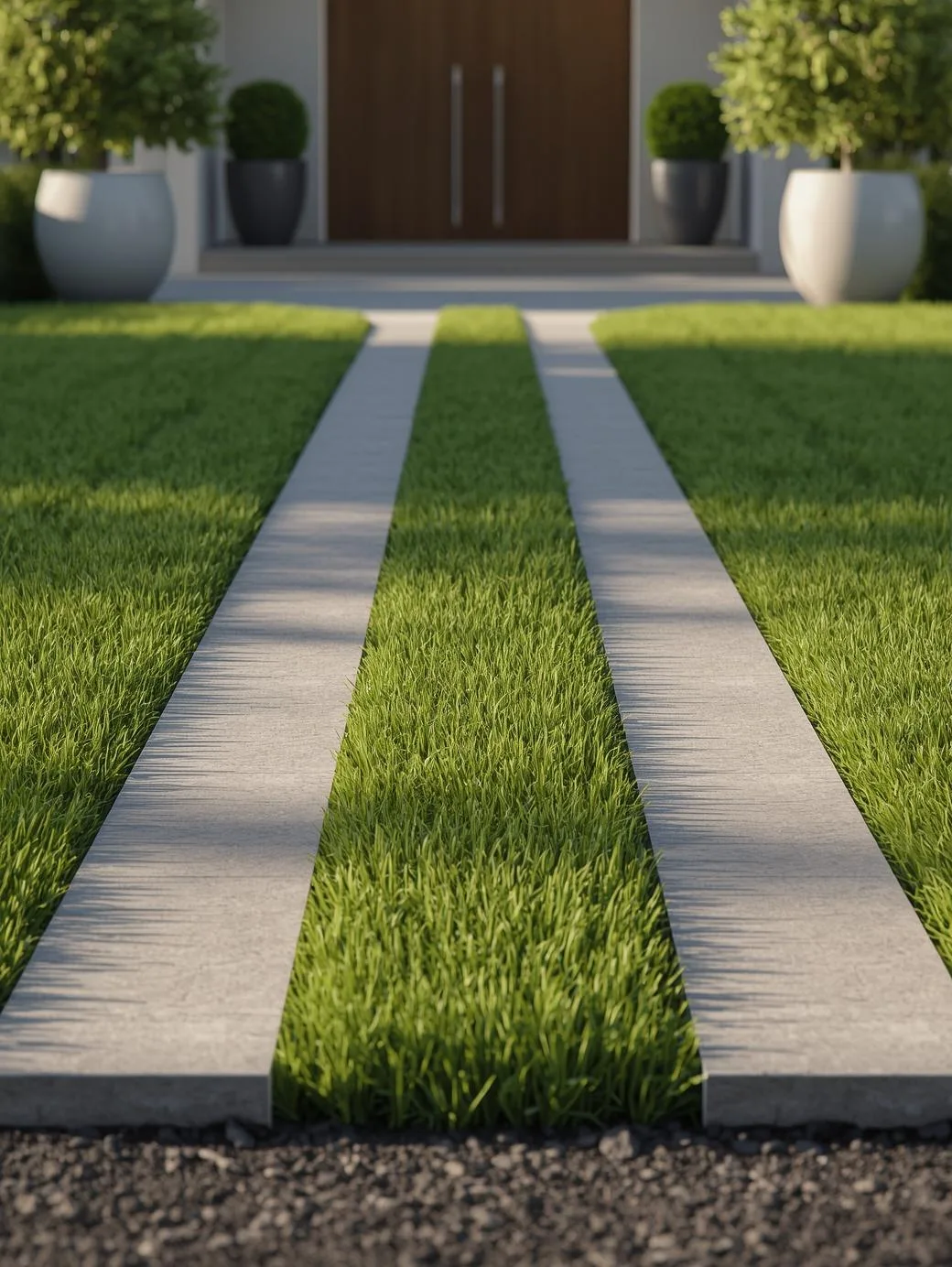 8. Bandes De Roulement En Béton Sur Gazon: Minimalisme Chic