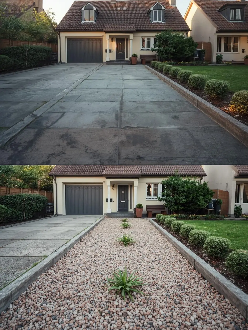 Budget: 45-60€/m² – Temps: 1 weekend – Résultat: Allée contemporaine facile d’entretien