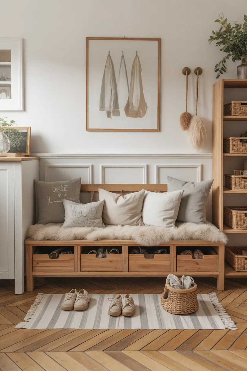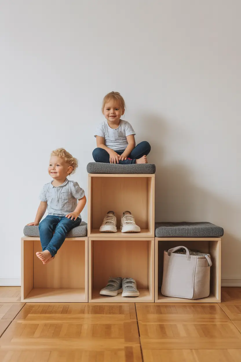 Pour les familles avec jeunes enfants, une petite banquette à leur hauteur change tout. Ils peuvent s’asseoir tout seuls, ranger leurs chaussures eux-mêmes – bonjour l’autonomie !