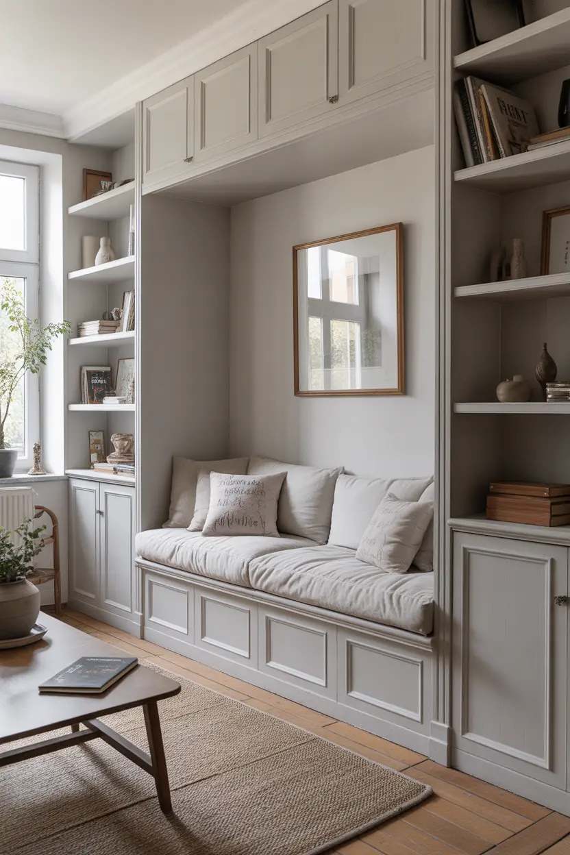 9. La Banquette Haute Avec Étagères : Du Sol au Plafond