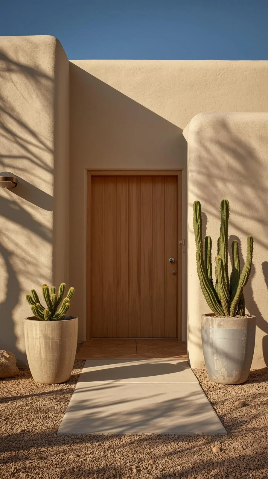 C’est graphique, c’est moderne, et surtout c’est ultra facile à entretenir. Pas d’arrosage intensif, juste le soleil et la beauté brute du désert. Si tu habites dans le sud, cette déco entrée maison extérieur est parfaite!