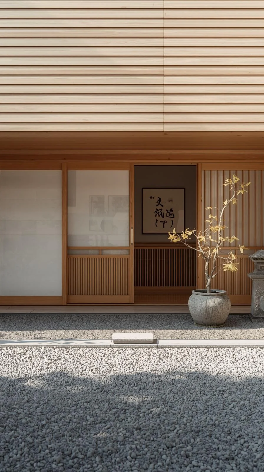 Tu connais ce moment où tu rentres chez toi et tu voudrais juste respirer? Voilà exactement ce que fait une entrée zen japonaise pour la déco entrée maison extérieur.