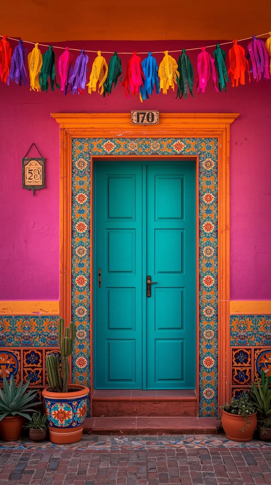 Attends, parce que là ça change vraiment tout pour la déco entrée maison extérieur! Une entrée mexicaine avec ses couleurs explosives, c’est la joie permanente.