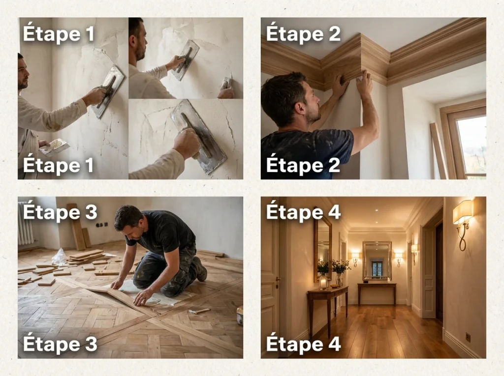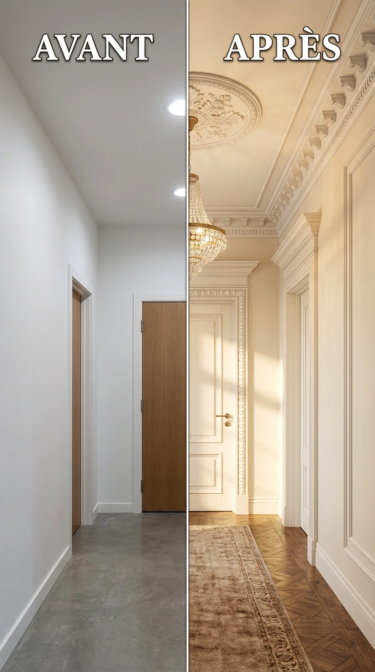 “Regardez attentivement cette photo”, dis-je souvent à mes clientes en leur montrant un avant/après saisissant. “Vous voyez cette différence bouleversante ? Elle tient à trois détails de 2 centimètres chacun : une plinthe sculptée, une corniche discrète, et un chanfrein sur l’encadrement de porte.” Cette approche minutieuse de la decoration entree maison couloir transforme littéralement la perception d’un espace.