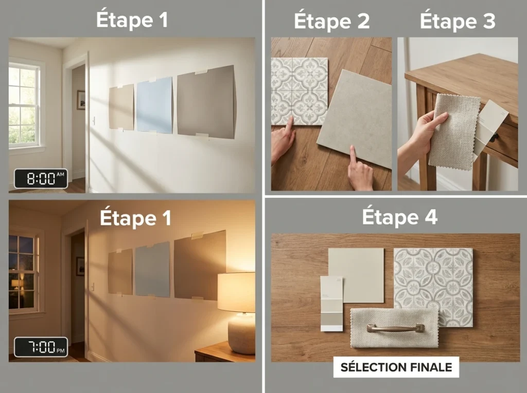 Cette couleur “gris souris” qui paraissait parfaite en magasin s’est révélée “bleu électrique” chez Martine. Moralité : je teste désormais TOUTES les couleurs sur un pan de mur entier, à différents moments de la journée.