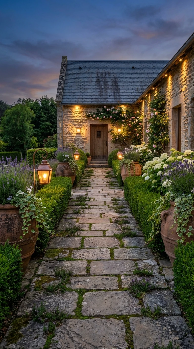 Souvenez-vous de chez Patricia : nous avons créé un chemin courbe en pierre de Bourgogne, bordé d’hortensias blancs. Ce détour apparent rallonge la découverte et crée du mystère. “Mes invités prennent maintenant le temps d’admirer avant de sonner”, me raconte-t-elle avec plaisir.