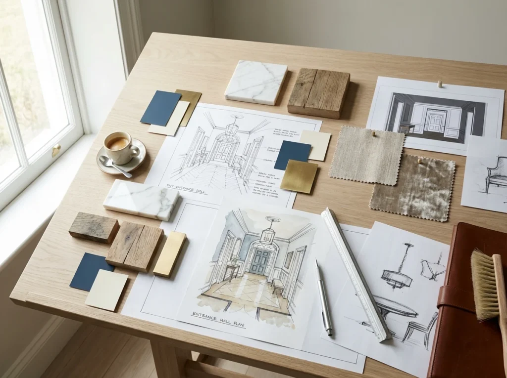 Mon Secret de Pro pour les Moulures : Je commence toujours par photographier l’espace existant, puis j’esquisse différents profils à la main. L’œil capte des nuances que l’ordinateur ne saisit pas. Pour les budgets serrés, une simple baguette d’angle de 15€ le mètre, peinte dans la couleur des murs, crée un effet saisissant.
