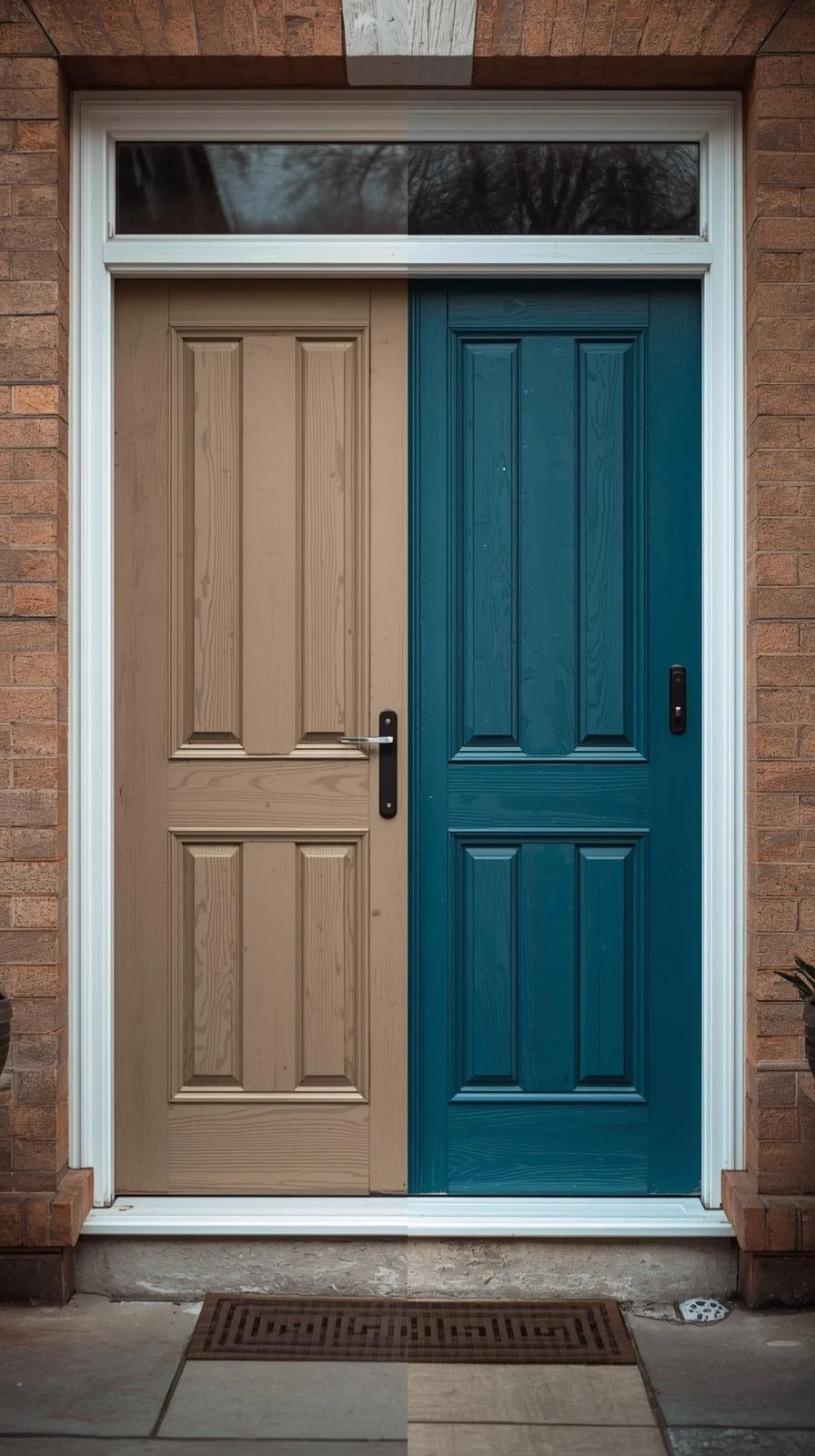 Avant j’avais une porte d’entrée extérieur beige standard de promotion immobilière. Maintenant: un bleu canard profond qui fait tourner les têtes.