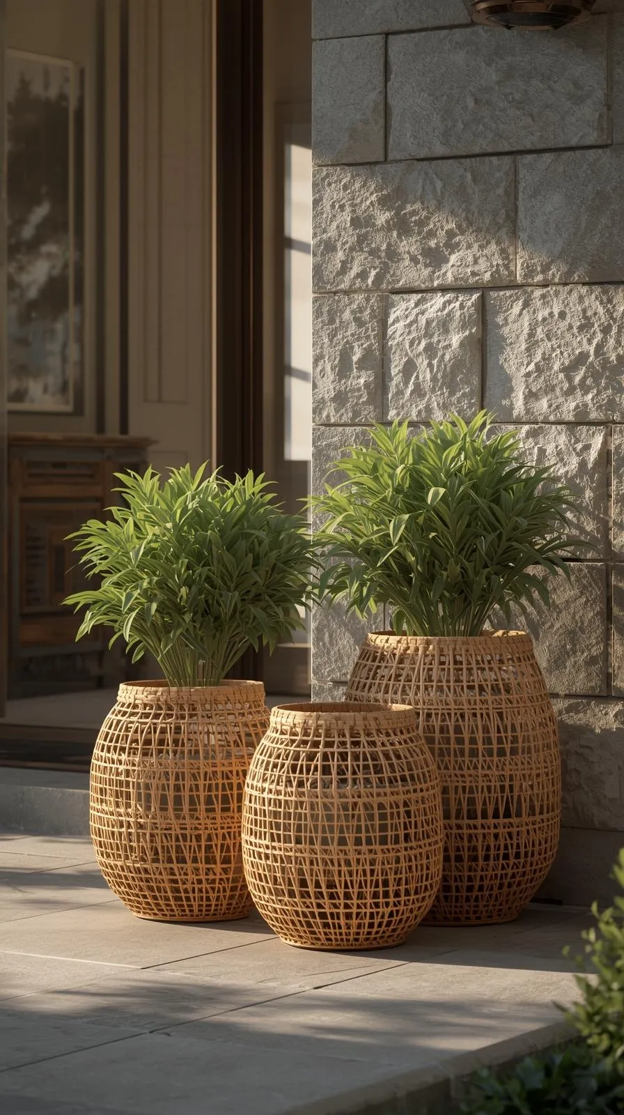 Les pots en plastique moche à l’entrée de maison extérieur, on a tous fait ça. Mais voilà la solution élégante: les cache-pots.