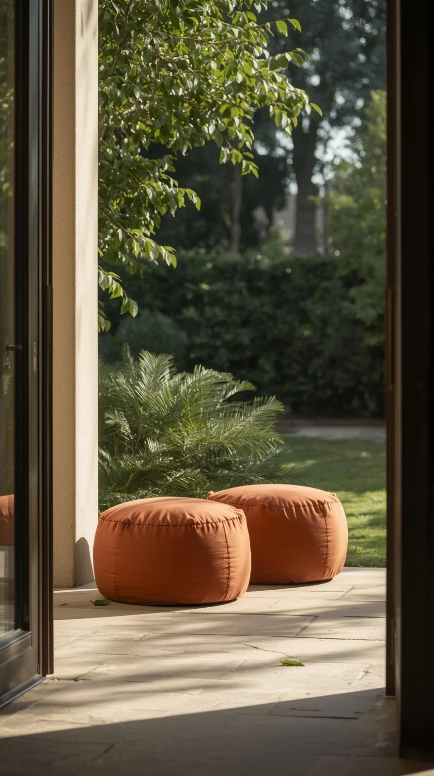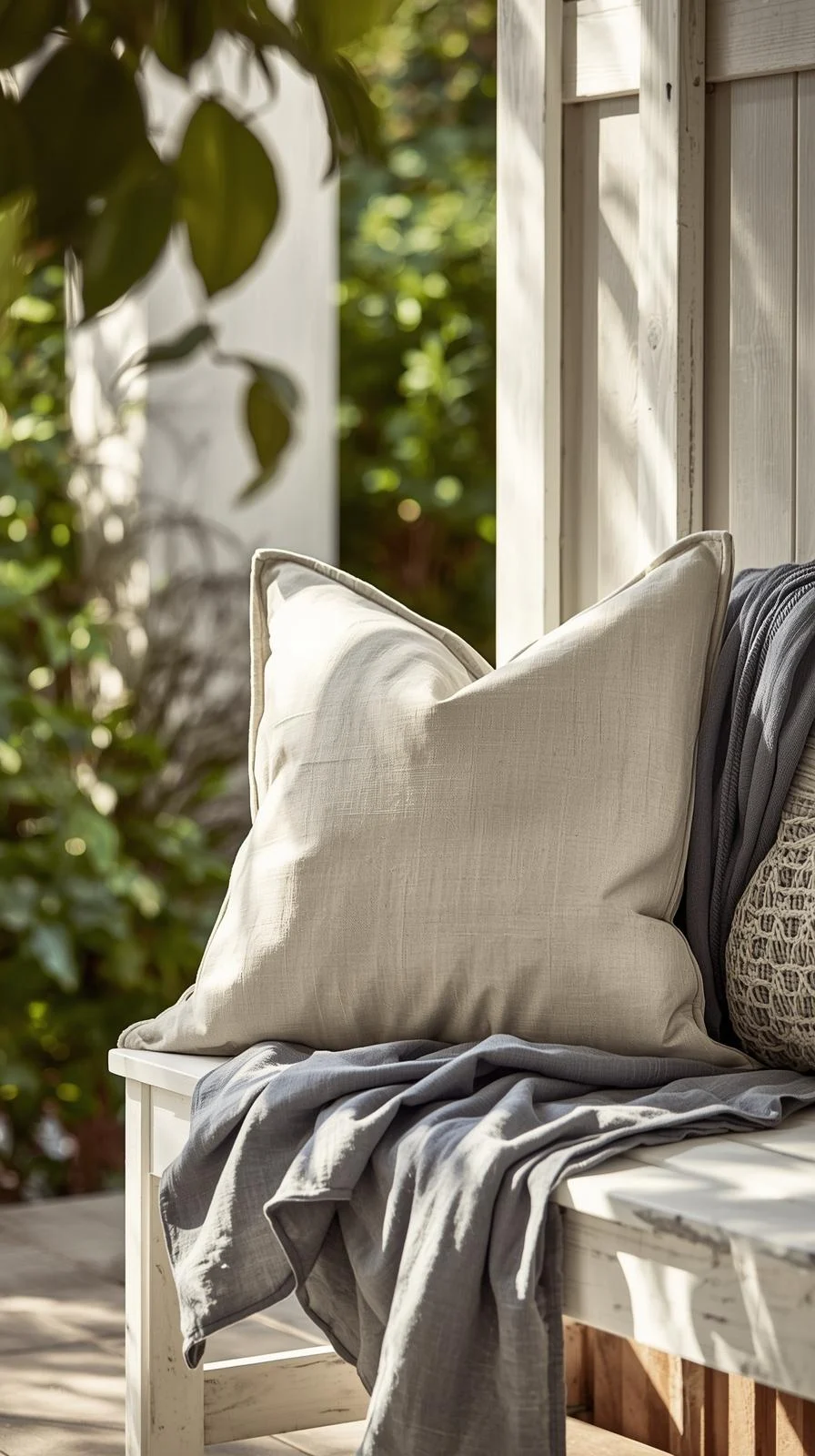 Tiens, celle-là est spéciale: ajouter des textiles extérieurs (coussins, plaid léger) à votre entrée transforme instantanément l’espace.