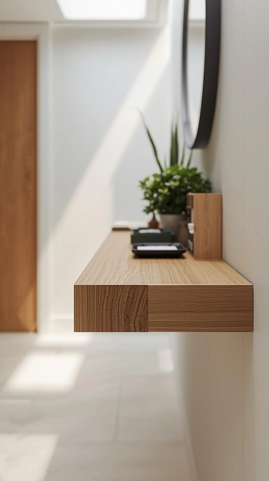 • Règle 2 – Respiration visuelle obligatoire: Même dans 2m², laissez 30% d’espace vide. Un hall entrée maison moderne surchargé vous oppresse inconsciemment. Le vide n’est pas du gaspillage – c’est votre respiration mentale en franchissant le seuil.
