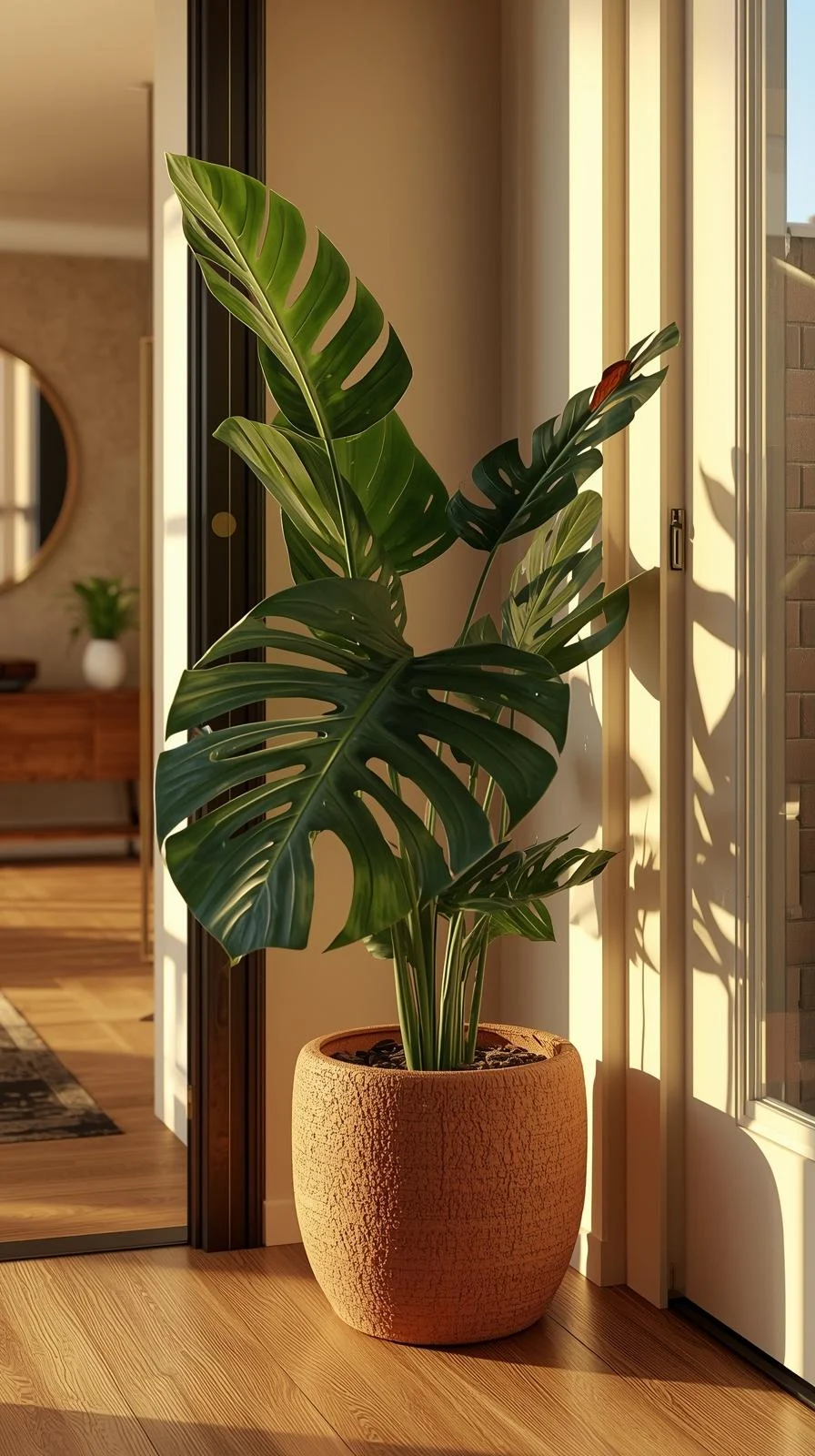 Monstera deliciosa (faux philodendron) XXL dans l’entrée = air purifié + effet jungle urbaine immédiat.