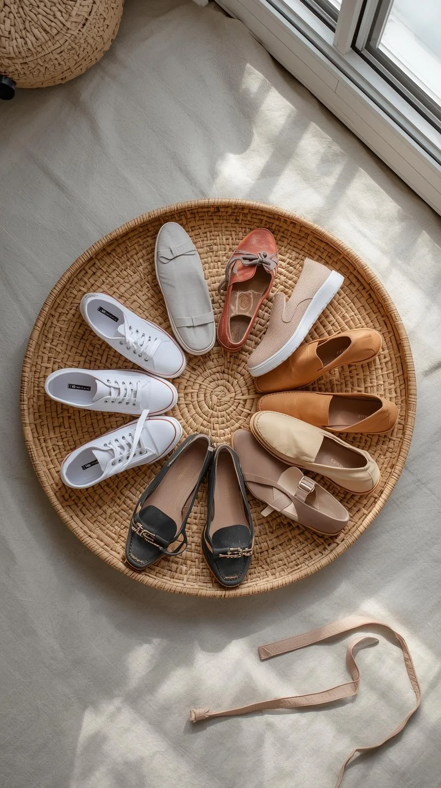 Les chaussures restent aérées (pas de boîtes fermées), visibles (vous n’oubliez plus que vous les avez), et occupent zéro surface au sol.