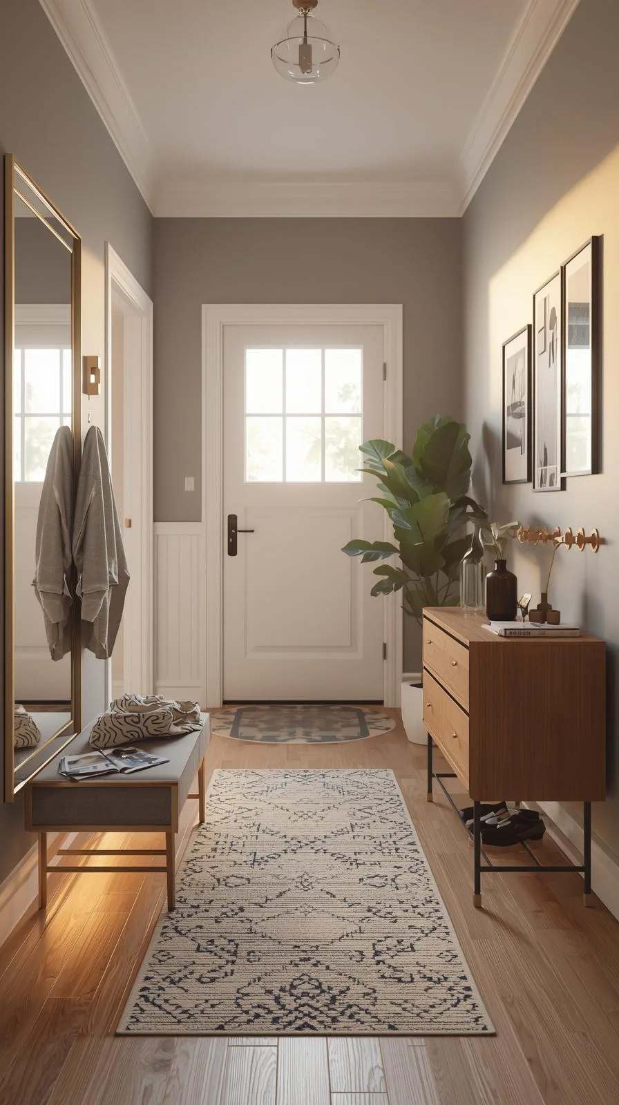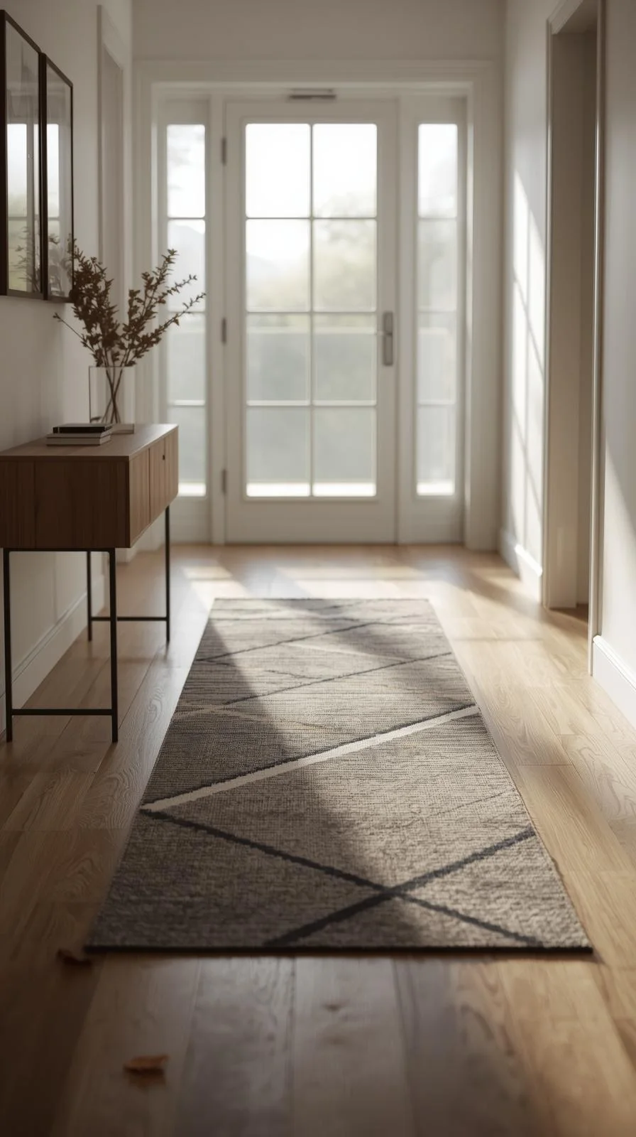 Vous savez ce qui m’a bluffée? Un simple tapis peut transformer visuellement votre hall entrée maison moderne.
