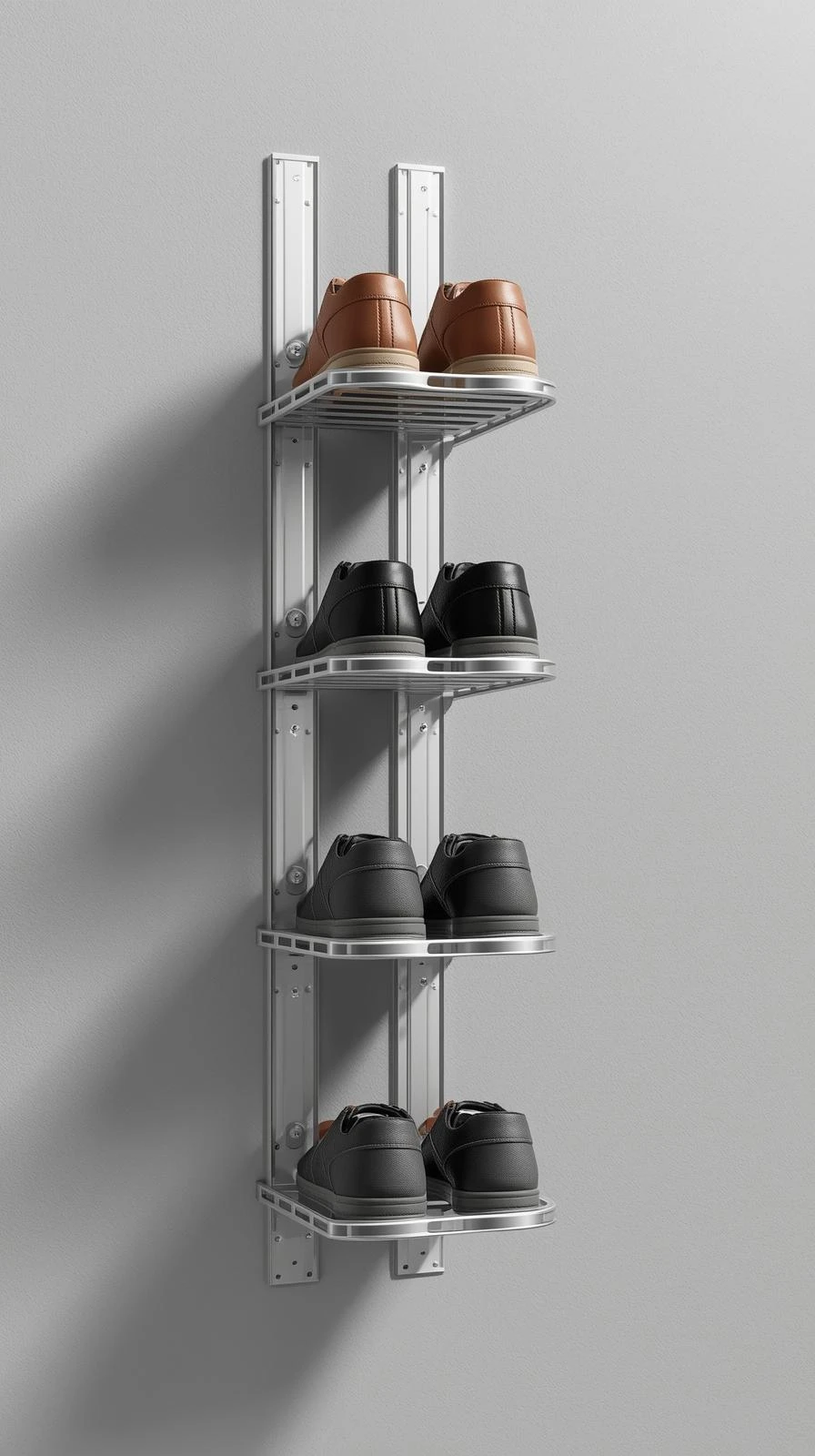 Supports muraux individuels qui maintiennent vos chaussures à la verticale = 12 paires sur 80cm de hauteur au lieu de 4 paires au sol.