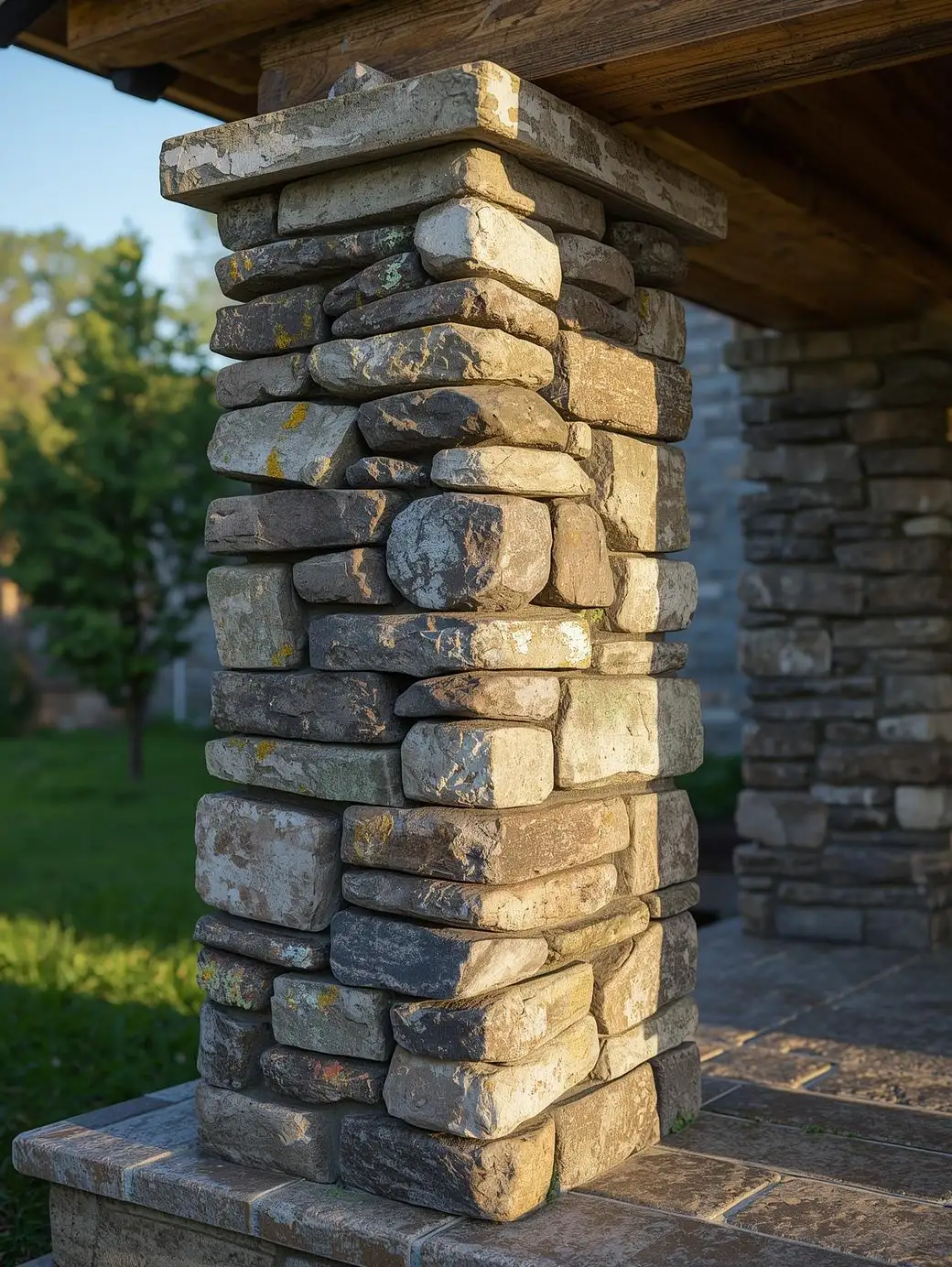 Laissez-moi vous expliquer pourquoi les colonnes en pierre sèche (empilées sans mortier apparent) donnent cette sensation d’authenticité impossible à reproduire autrement.