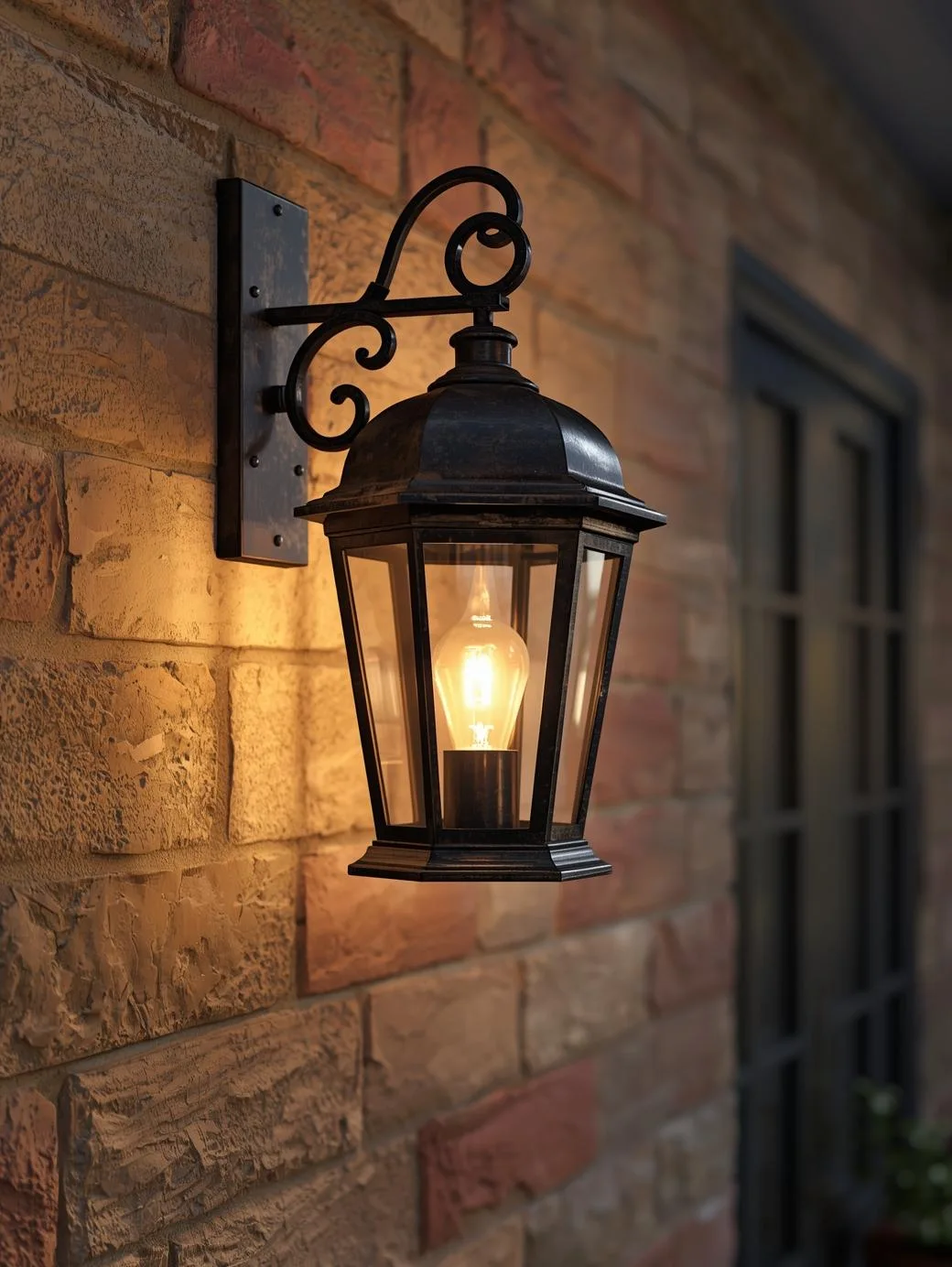 Les appliques murales façon lanterne d’époque créent cette ambiance accueillante dès la tombée de la nuit, tout en assurant sécurité et visibilité.