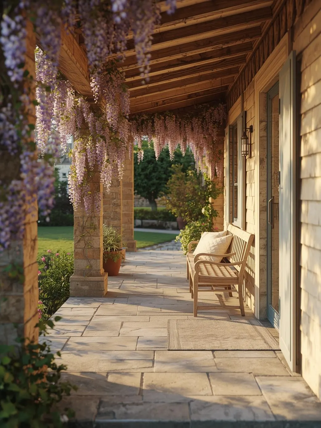 Et là, tout change. Pourquoi? La glycine crée ce voile végétal qui filtre la lumière sans bloquer la vue, et cette odeur… cette odeur de printemps qui vous accueille avant même d’ouvrir la porte.