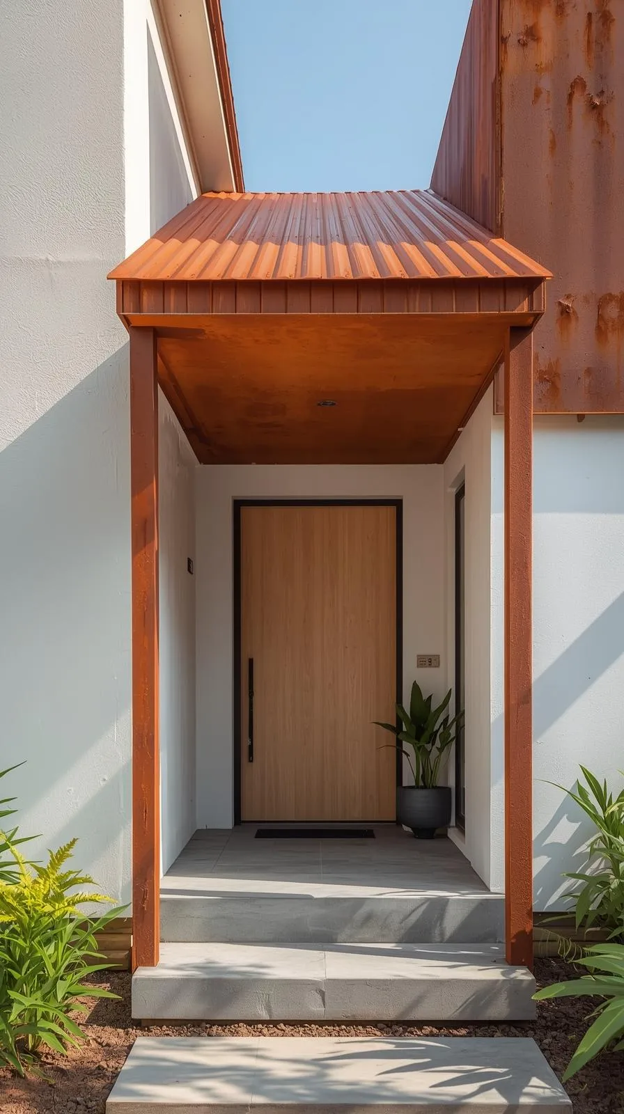 Avant, je pensais que la rouille c’était moche. Et puis j’ai découvert l’acier corten pour ce porche maison entrée moderne et j’ai changé d’avis!