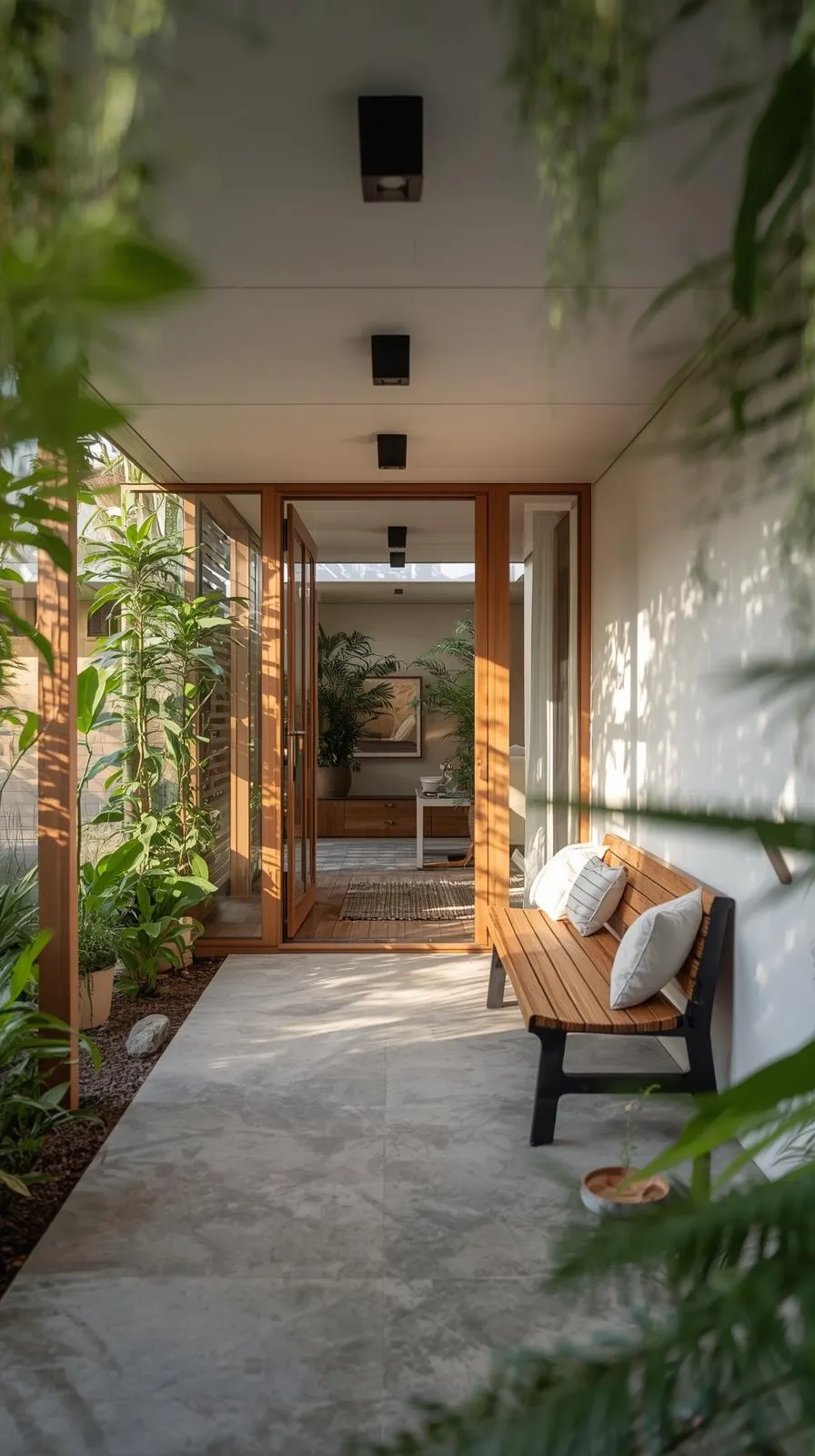 Écoute, cette idée elle est hyper efficace pour un porche maison entrée moderne chaleureux. Du bois clair, des lignes simples, la lumière qui filtre doucement…