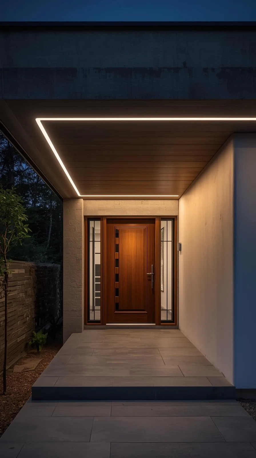 Bon, là c’est un peu mon côté perfectionniste qui parle pour ce porche maison entrée moderne. Mais franchement, des LED intégrées invisibles le jour et magiques la nuit, c’est top!