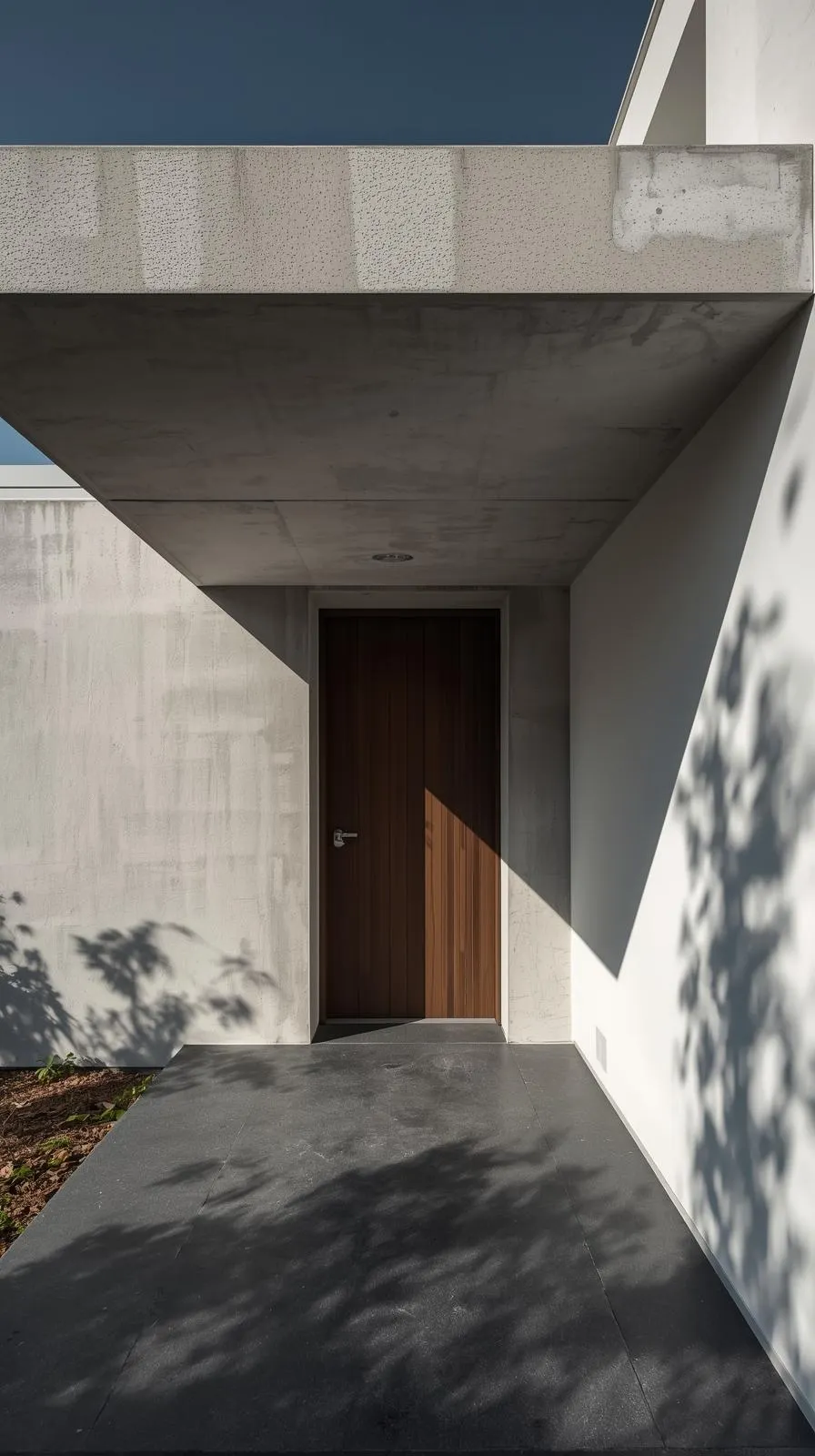 Alors là, attention, coup de cœur total pour ce porche maison entrée moderne! Un toit plat en béton suspendu, ultra fin, qui semble flotter au-dessus de la porte.