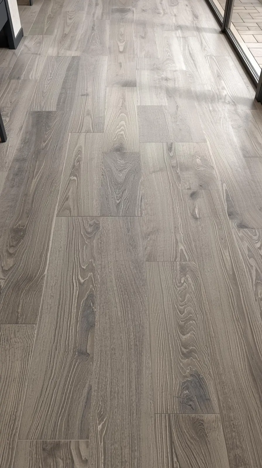 Attends, celle-là elle est vraiment top si tu veux l’esthétique du bois sans les contraintes! Le grès cérame imitation bois pour ce sol entrée maison, c’est le meilleur des deux mondes.
